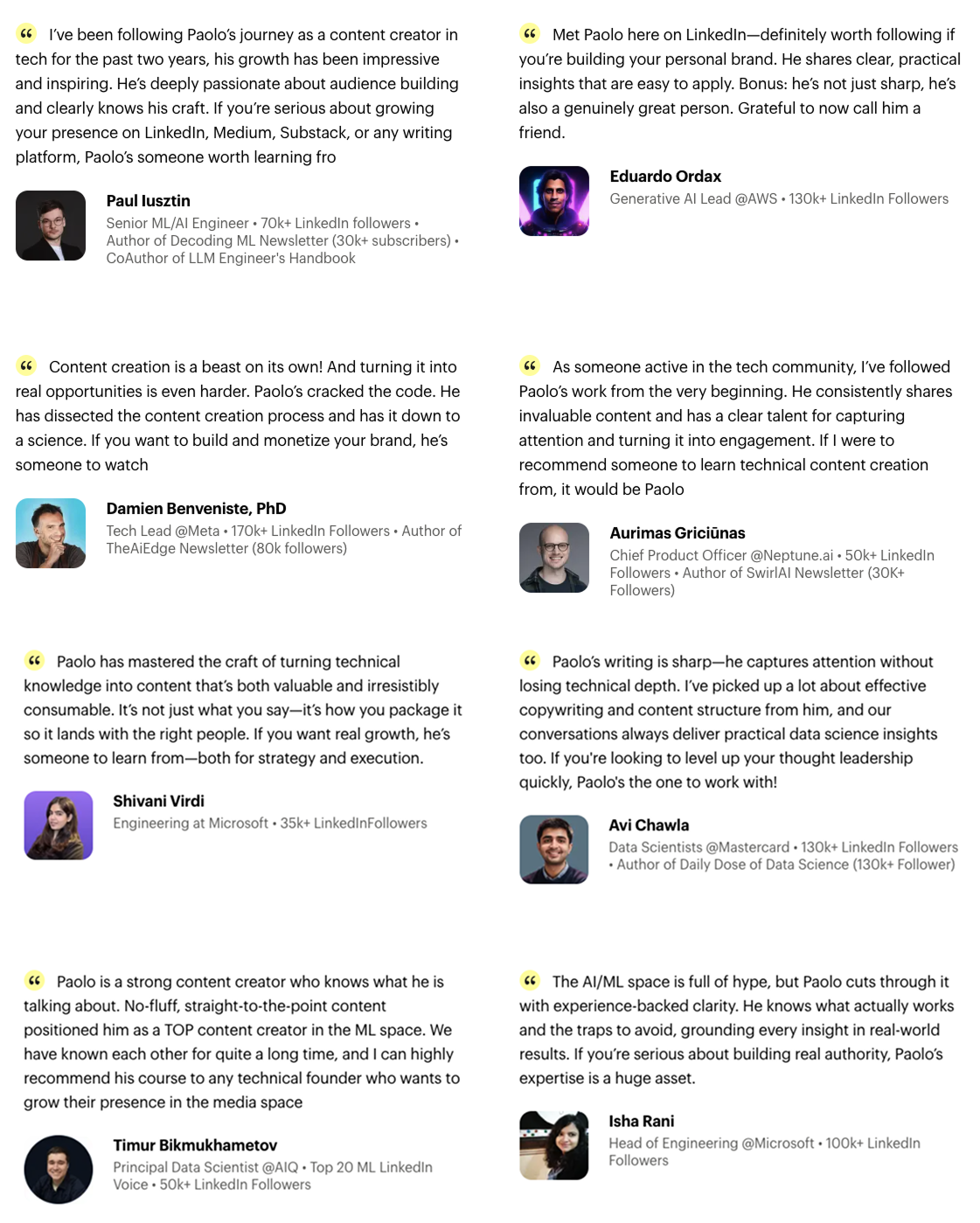 LinkedIn Audience Building for AI/ML Engineers gives you a step-by-step blueprint with proven frameworks, actionable workflows, and real-world examples. So you can fast-track your growth, skip costly trial and error, and build an audience that opens doors.
